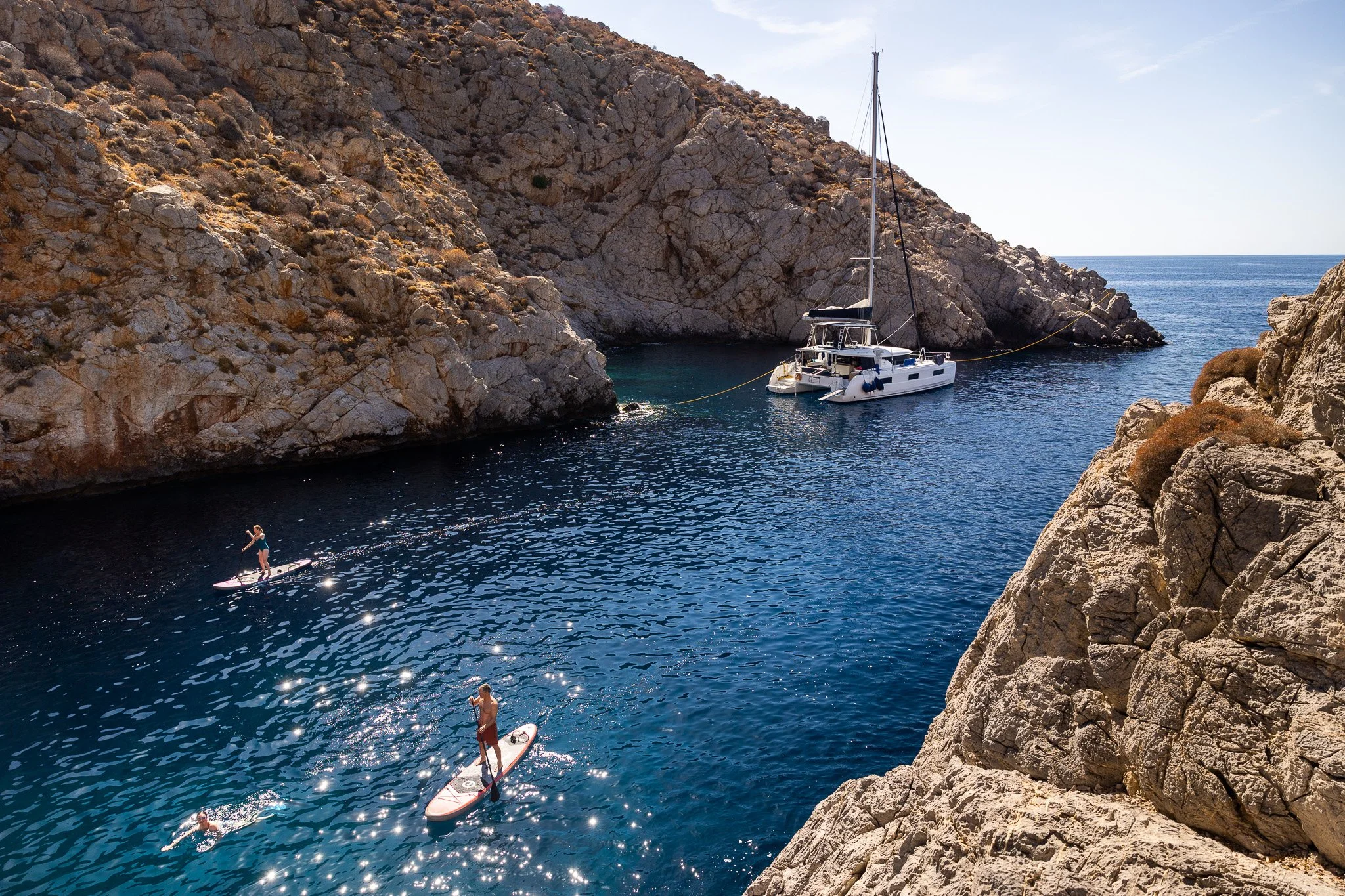 This boat is known for its day beds on deck and its fully air-conditioned stateroom with private bathrooms and showers. Her size and our experience, allow us to navigate into small seaside ports and tight natural harbors for the most intimate nautical experience.