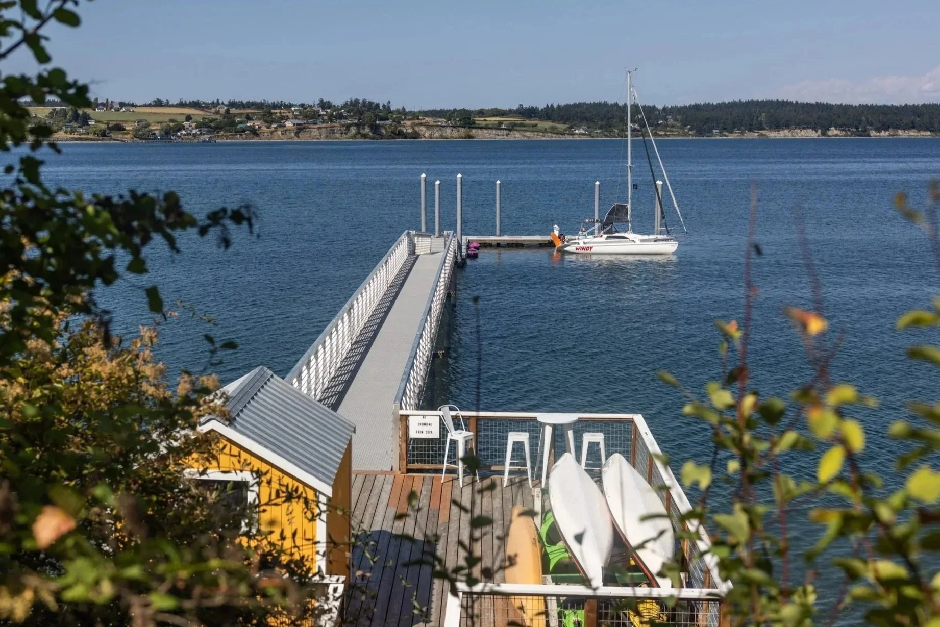 Sail beyond the Coupeville Wharf toward Blowers Bluff, where the exposed cliffs provide a view into the geologic history that shaped Penn Cove thousands of years ago. Learn to steer, or simply relax on the nets and enjoy the motion of sailing with views of Mount Baker off our bow. Upon arrival at our afternoon stop, set out on paddleboards along the shore or take a walk on the beach before gathering for a picnic made with locally sourced ingredients.
